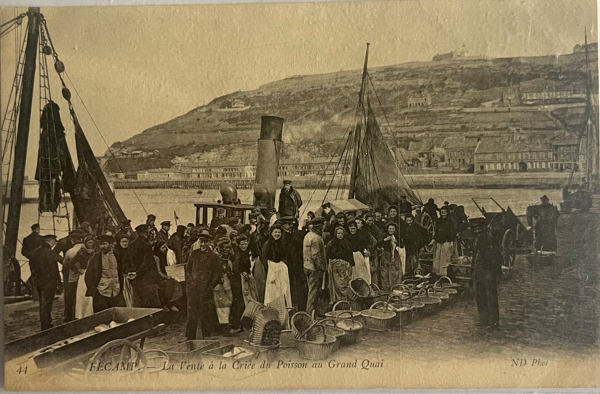 Explorez cette carte postale ancienne de la ville de Fécamp dans le département 76 - Seine-Maritime en France. CPA FR76 Fécamp - La Vente à la Criée du Poisson au Grand Quai est sélectionnée pour son authenticité et sa valeur historique. Encore vierge, c'est l'occasion idéale pour partager cette carte exceptionnelle avec une personne qui vous tient à coeur. Idéale pour les collectionneurs et les amateurs d'histoire, les photographies d'époque vous offre un aperçu unique d'une époque révolue. Chaque carte postale est un témoignage du passé, ajoutant une pièce rare et précieuse à votre collection. Découvrez d'autres trésors dans notre vaste sélection de cartes postales anciennes.
